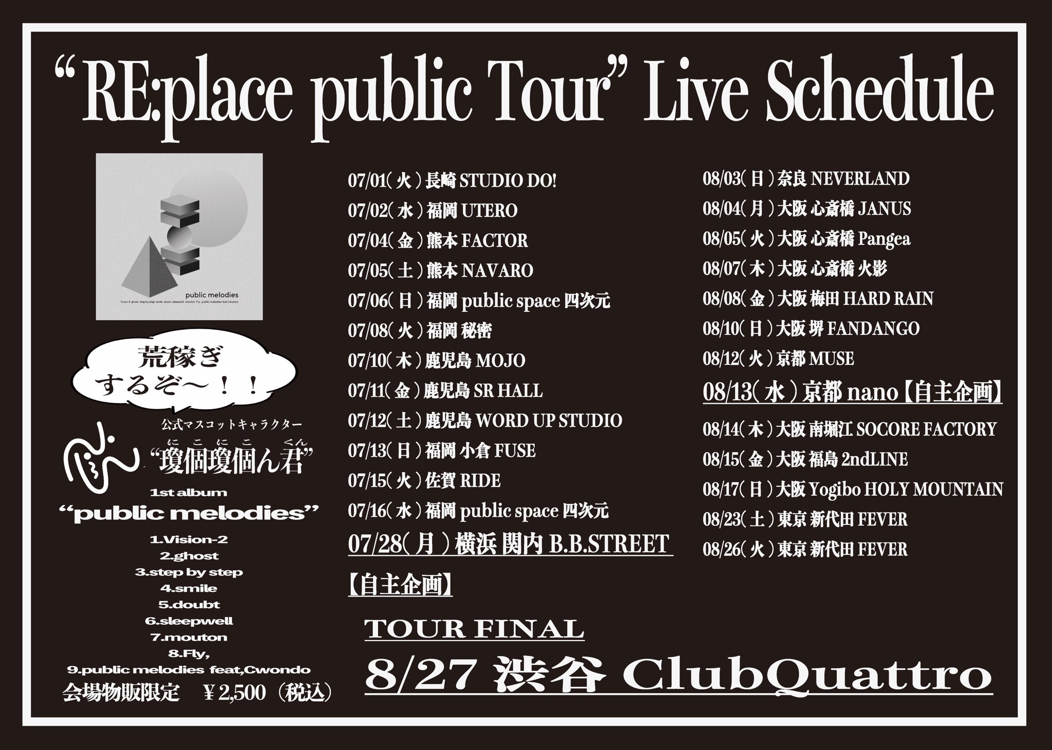 Nikoん 鹿児島3デイズ公演決定 2025-05-17 NEWS LIVE 2025.7 Nikoん「RE:place public tour 2025」 2025年7月10日(木)鹿児島県 BAR MOJO 2025年7月11日(金)鹿児島県 SR HALL 2025年7月12日(土)鹿児島県 WORD UP STUDIO MORE INFO