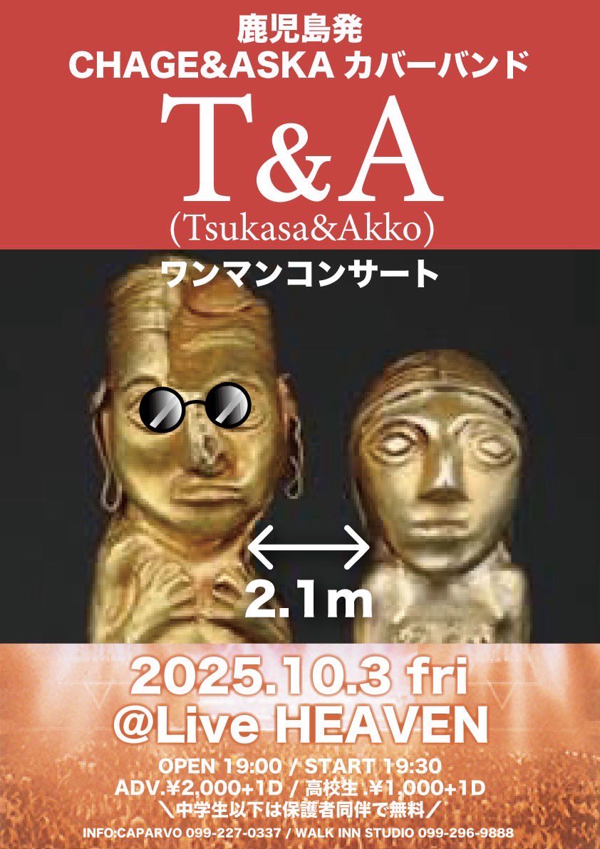 鹿児島発 CHAGE&ASKA カバーバンド T&A(Tsukasa&Akko) ワンマンコンサート開催