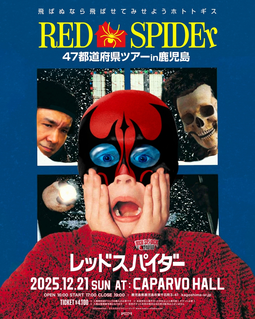RED SPIDER 鹿児島キャパルボ公演決定 2025-09-12 NEWS LIVE 2025.12 RED SPIDER 47都道府県ツアー in 鹿児島 2025年12月21日(日) CAPARVO HALL 開場 16:00 / 開演 17:00 一般チケット:¥4,700- お問い合せ カエルスタジオミュージック(info@kaeru-studio.com) MORE INFO
