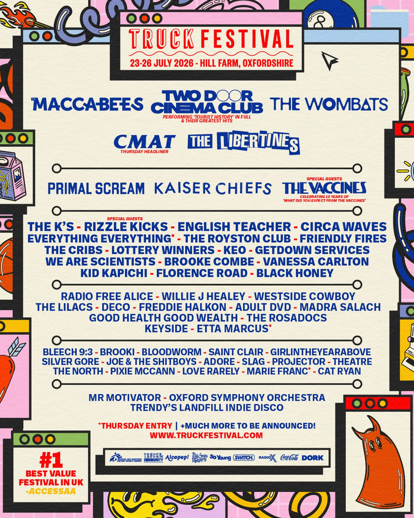 Lineup :: THE MACCABEES / TWO DOOR CINEMA CLUB / THE WOMBATS / CMAT / THE LIBERTINES / PRIMAL SCREAM / KAISER CHIEFS / THE VACCINES